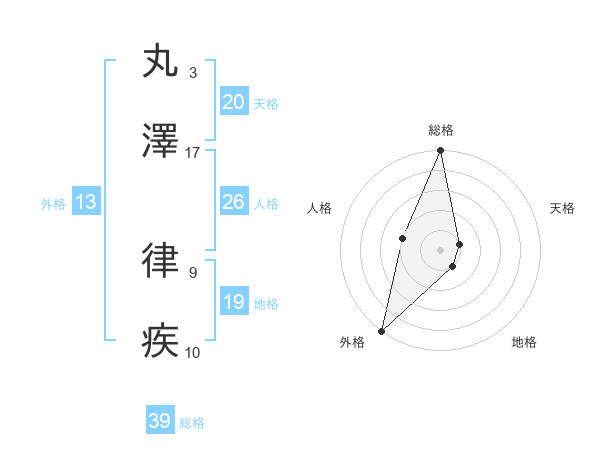 丸澤 律疾さんを姓名の画数から五運を鑑定