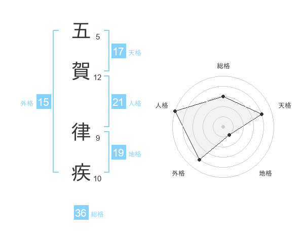 五賀 律疾さんの天格は17画の4点!