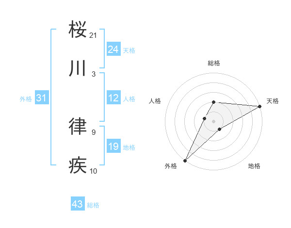 桜川 律疾さんを姓名の画数から五運を鑑定