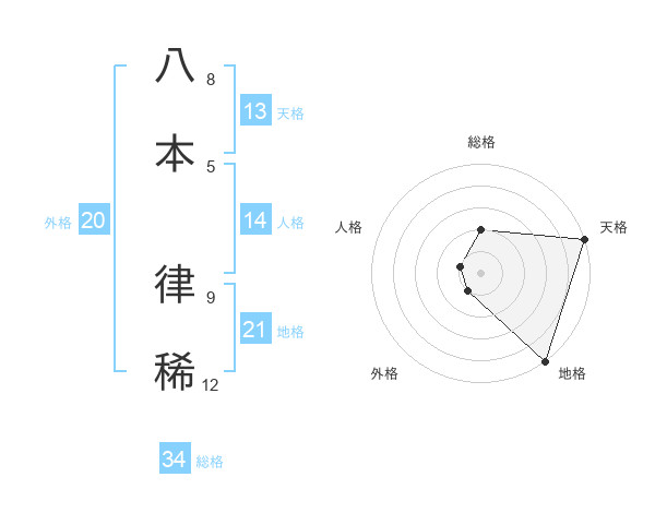 八本 律稀さんの総格は34画の2点!