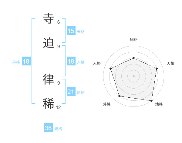 寺迫 律稀さんの天格は15画の4点!