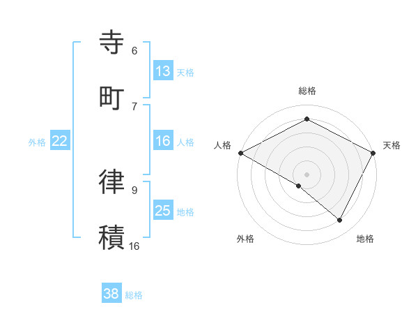 寺町 律積さんの総格は38画の4点!