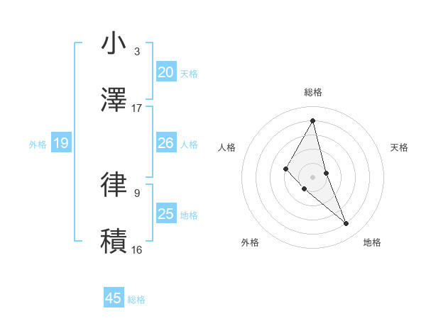 小澤 律積さんの天格は20画の1点!