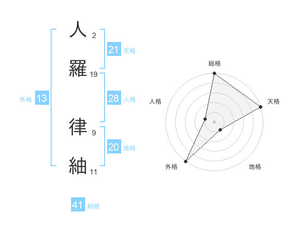 人羅 律紬さんを姓名の画数から五運を鑑定