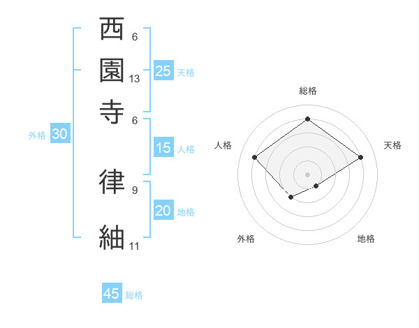 西園寺 律紬さんの天格は25画の4点!