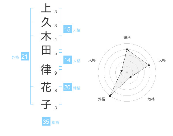 上久木田 律花子さんを姓名の画数から五運を鑑定