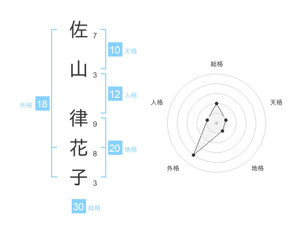 佐山 律花子さんを姓名の画数から五運を鑑定