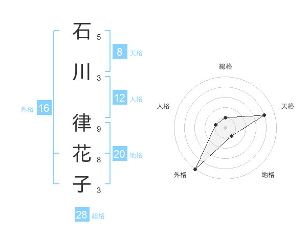 占い結果は姓名判断である以上、良い場合も悪い場合もありますが、決してお名前を誹謗中傷するものでなく、画数の自動計算によって得られたものです。また、本サイトの検索によって得られた鑑定結果で、第三者を誹謗中傷したり名誉を棄損するような行為を禁じます。