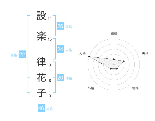 設楽 律花子さんを姓名の画数から五運を鑑定