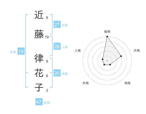 近藤 律花子さんを姓名の画数から五運を鑑定