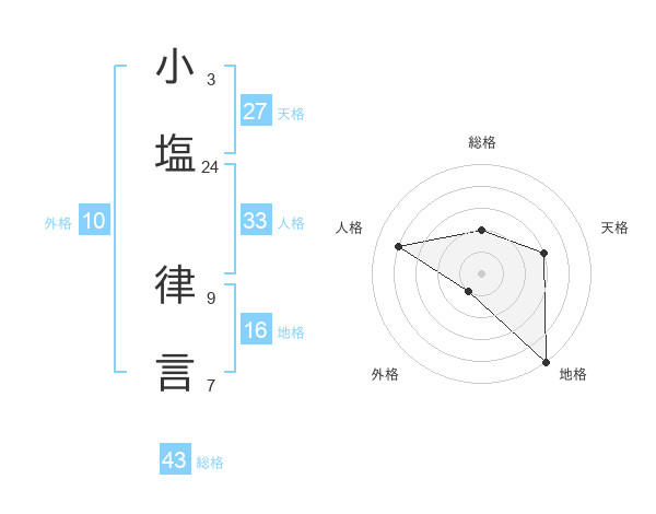 小塩 律言さんの総格は43画の2点!