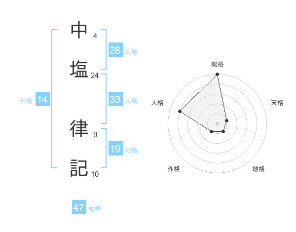 中塩 律記さんの総格は47画の5点!