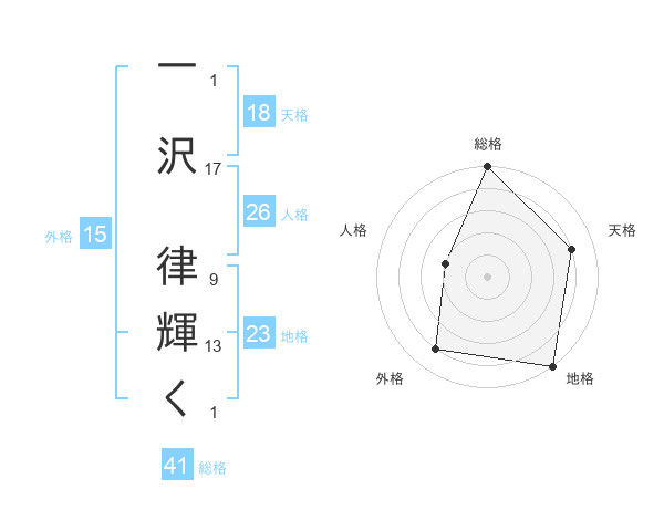 一沢 律輝くさんを姓名の画数から五運を鑑定
