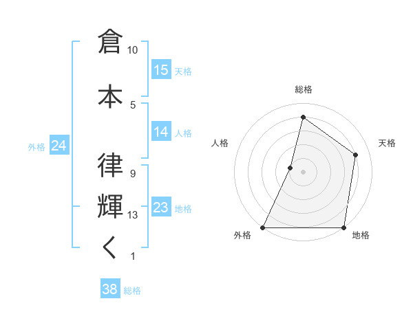 倉本 律輝くさんを姓名の画数から五運を鑑定