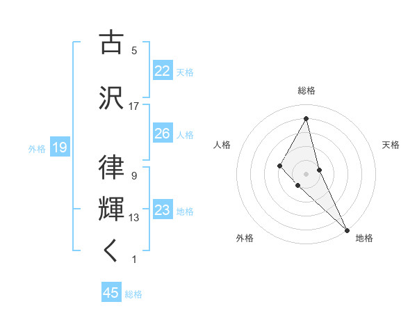 古沢 律輝くさんを姓名の画数から五運を鑑定