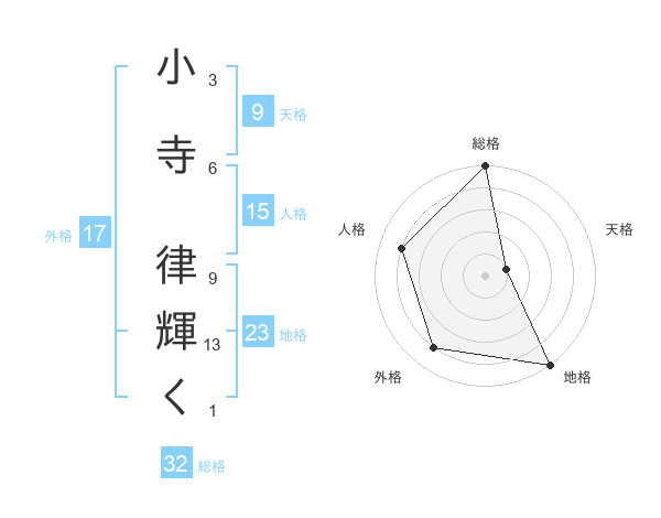 小寺 律輝くさんの地格は23画の5点!