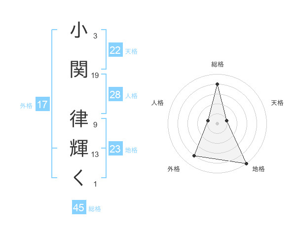 小関 律輝くさんを姓名の画数から五運を鑑定