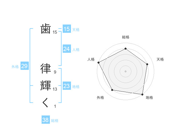 歯 律輝くさんを姓名の画数から五運を鑑定