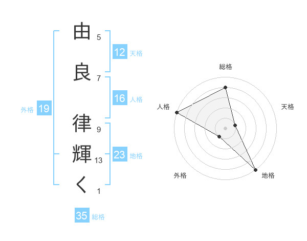 由良 律輝くさんを姓名の画数から五運を鑑定