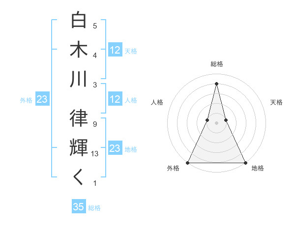 白木川 律輝くさんを姓名の画数から五運を鑑定
