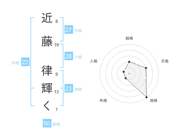 近藤 律輝くさんを姓名の画数から五運を鑑定