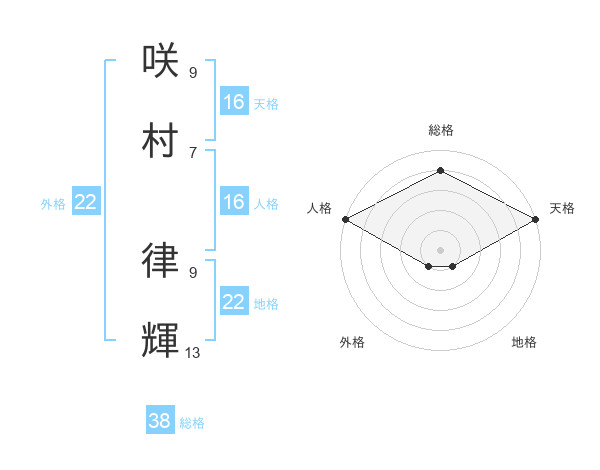 咲村 律輝さんの総格は38画の4点!