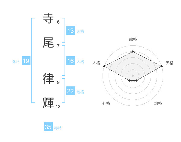寺尾 律輝さんの地格は22画の1点!