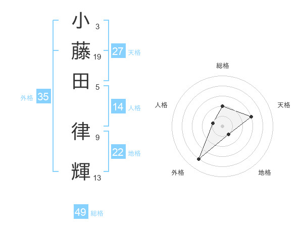 小藤田 律輝さんの総格は49画の2点!