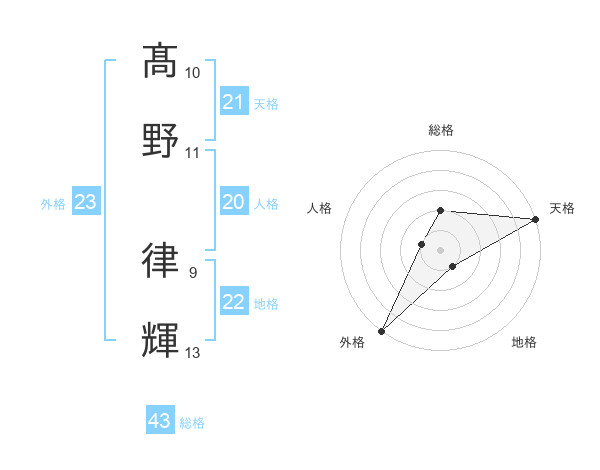 髙野 律輝さんの天格は21画の5点!