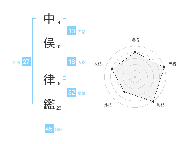 中俣 律鑑さんを姓名の画数から五運を鑑定