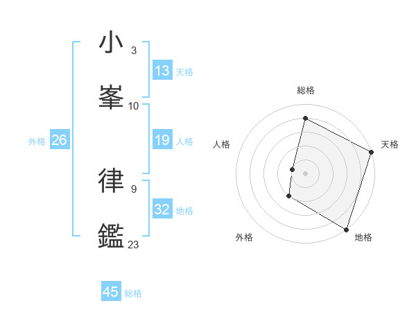 小峯 律鑑さんを姓名の画数から五運を鑑定