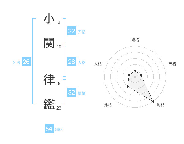 小関 律鑑さんの総格は54画の1点