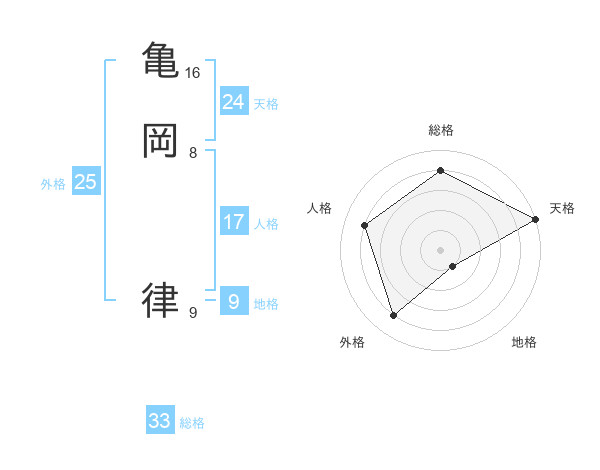 亀岡 律さんの天格は24画の5点!