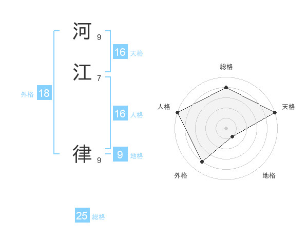河江 律さんの天格は16画の5点!