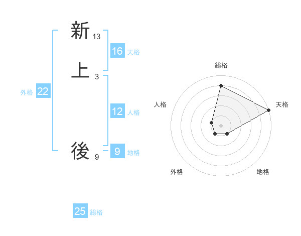 新上 後さんの総格は25画の4点!