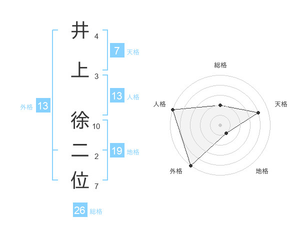 井上 徐二位さんを姓名の画数から五運を鑑定