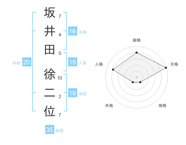 坂井田 徐二位さんを姓名の画数から五運を鑑定
