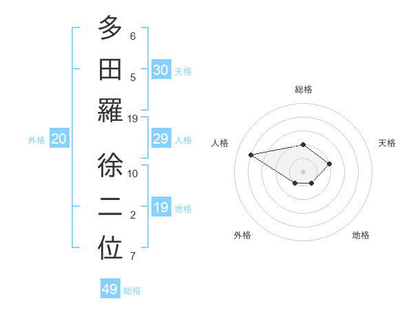 多田羅 徐二位さんを姓名の画数から五運を鑑定