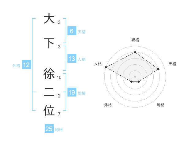 大下 徐二位さんを姓名の画数から五運を鑑定