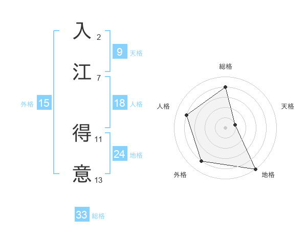 入江 得意さんの総格は33画の4点!