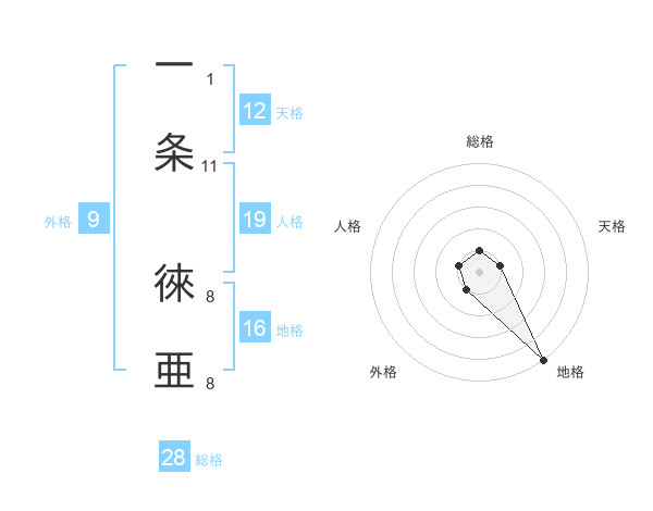一条 徠亜さんを姓名の画数から五運を鑑定