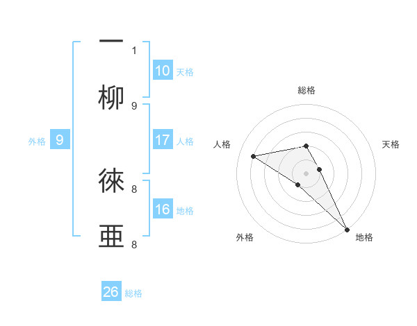 一柳 徠亜さんの総格は26画の2点!