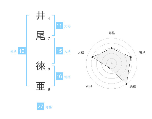 井尾 徠亜さんの総格は27画の3点!