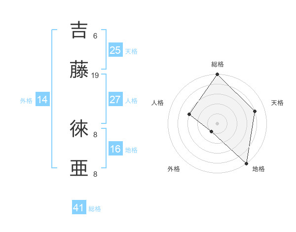 吉藤 徠亜さんの総格は41画の5点!