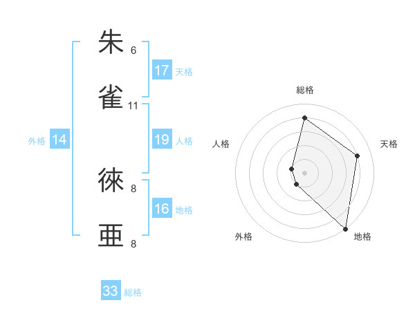 朱雀 徠亜さんを姓名の画数から五運を鑑定