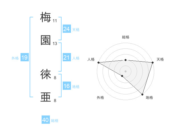 梅園 徠亜さんを姓名の画数から五運を鑑定