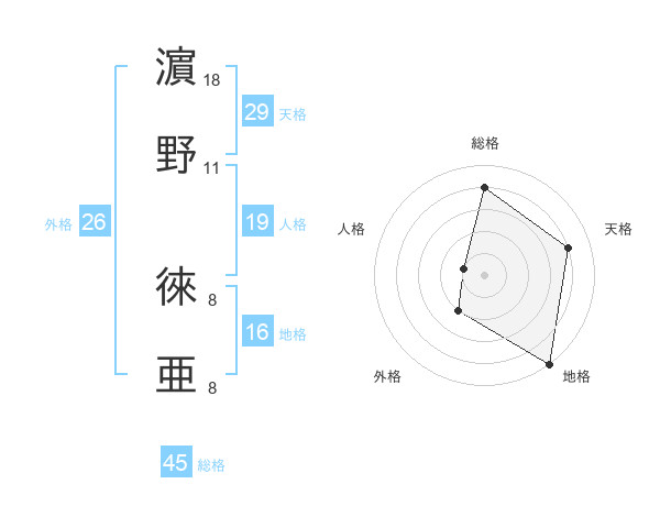 濵野 徠亜さんの総格は45画の4点!