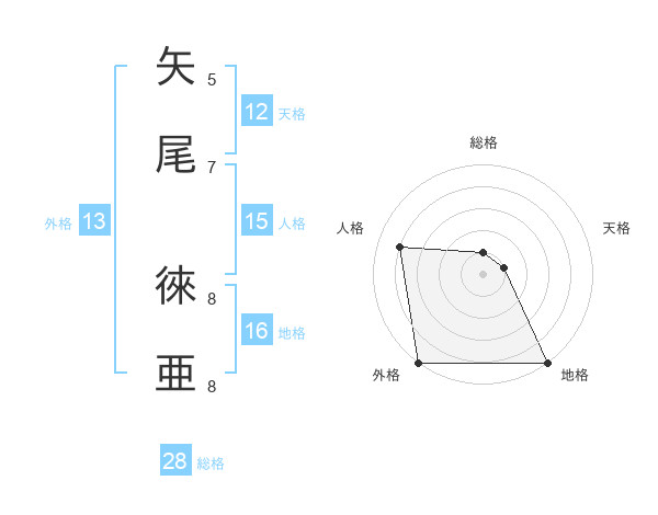 矢尾 徠亜さんの外格は13画の5点!