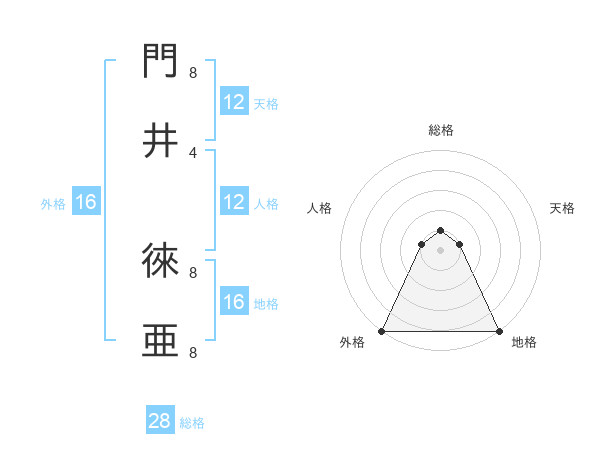 門井 徠亜さんを姓名の画数から五運を鑑定