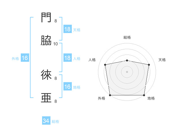 門脇 徠亜さんを姓名の画数から五運を鑑定